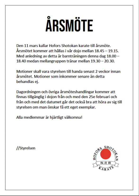 Varmt välkommen till Hofors Shotokan Karate för en dag fylld av kunskap, reflektion och träning!